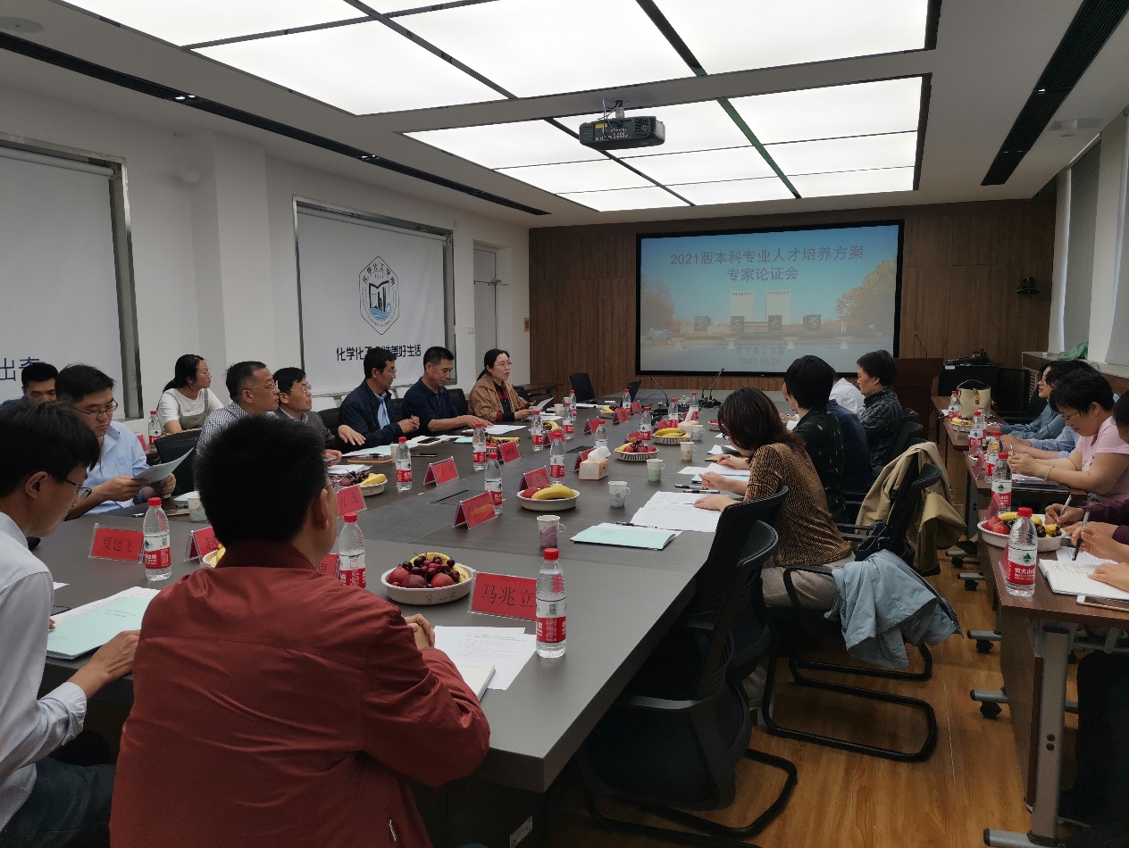 会上,张晓东院长对各位专家的到来表示热烈欢迎,并介绍了学院的基本情况。毕赛副院长详细解读了2021版人才培养方案修订的原则意见。接下来,吕洲、方龙、韩松德三位主任从培养目标、毕业要求、课程设置、实践环节、学分要求等方面分别对应用化学专业、化学工程与工艺专业、化学教育专业人才培养方案的修订情况进行了汇报。各位专家对我院2021版本科专业人才培养方案的修订工作给予了充分肯定,并结合自身经验,对培养目标、课程设置、专业认证要求等方面给出了中肯的意见和建议。与会师生针对专家给出的修改意见和建议进行了充分交流。