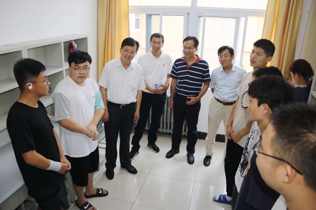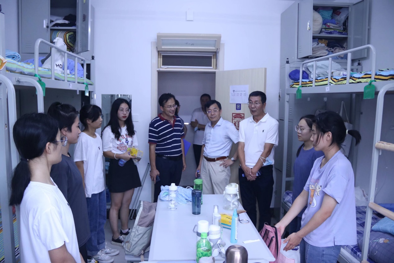 9月9日下午15:30,校党委常委,组织部部长徐龙飞在学院党委书记赵连章、院长王国明等人陪同下,走访了学院2021级本科新生部分宿舍,了解同学们学习和生活情况,为他们送上学校的关心和温暖。