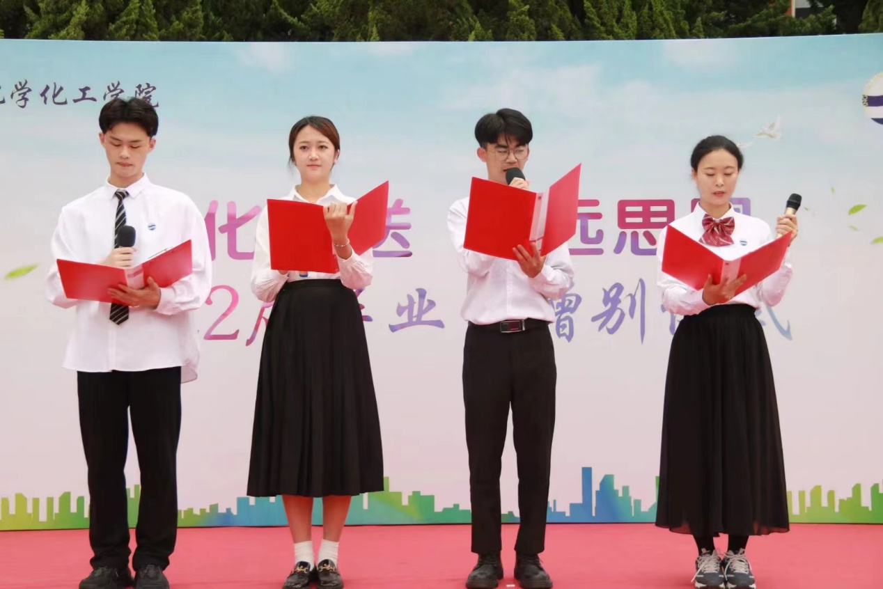 由 2022 届毕业生李静、孟涵雨、2019级刘阳、2021级王志旭同学带来的诗朗诵《“化”别六月》,与毕业生们相约一起,共同追忆四年的欢笑和泪水,抒发了离别的眷恋和情思,展望了未来的多彩和幸福。