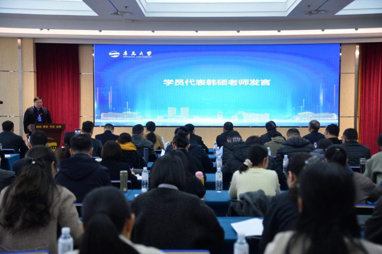 学员代表、青岛第十七中学韩硕老师在发言中表达了全体参训学员对本次培训的热切期盼,并作出认真学习、学以致用的郑重承诺。他表示,全体学员将以饱满的热情、务实的态度投入到培训学习,将所学新理念、新方法、新技术融入日常教学,充分发挥骨干教师的辐射带动作用,为提升全省高中化学教育质量,培养更多优秀的学生贡献自己的力量。