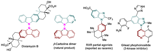 具有代表性的N-N及N-C联芳基轴手性天然产物以及药物活性分子