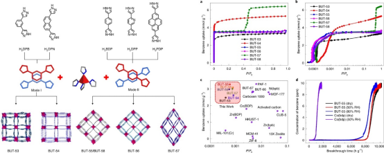 图1. BUT-53~BUT-58的构筑策略及苯吸附性能研究