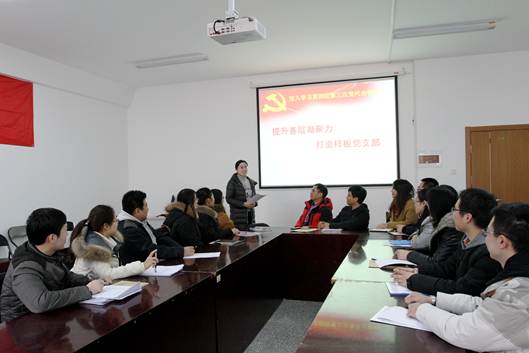 为了深入学习、宣传和贯彻学校第三次党代会精神,深刻领会其对学校未来发展的重要意义,2019年1月2日下午太阳网集团tcy8722化学系党支部开展了“深入学习贯彻校第三次党代会精神——提升基层凝聚力,打造样板党支部”的主题党日活动。化学系支部书记毕赛主持活动,传达了学校第三次党代会精神,布置了接下来支部工作计划和实施重点。太阳网集团tcy8722党委书记高育红出席主题党日活动并讲话。