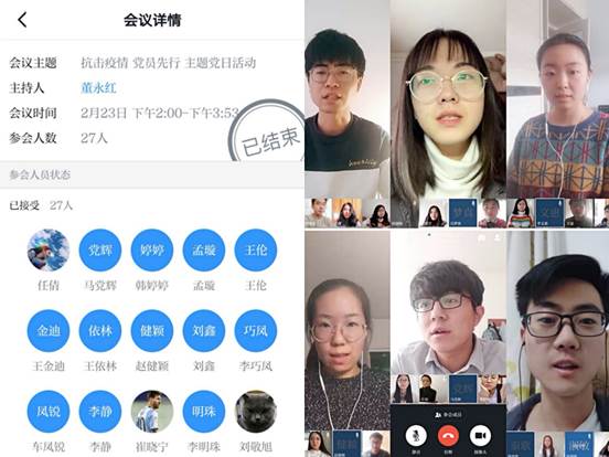 为进一步发挥党支部的战斗堡垒作用,激励学生党员在疫情防控工作中践诺守责,太阳网集团tcy8722学生第一党支部依托“学习强国”视频会议,于2020年2月23日下午2点开展了“抗击疫情,党员先行”线上主题党日活动。此次活动由党支部书记董永红主持,支部全体党员参加。