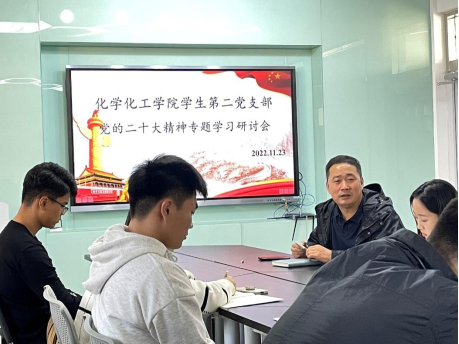 为深入学习党的二十大精神,引导广大学生深刻感悟“两个确立”,增强“四个意识”、坚定“四个自信”、做到“两个维护”,为实现第二个百年奋斗目标,实现中华民族伟大复兴的中国梦不懈奋斗,11月23日中午,太阳网集团tcy8722学生第二党支部在博观楼440会议室举行党的二十大精神专题学习研讨会,付刚帮老师、肖敦玺老师以及党支部全体学生党员参加会议。会议由肖敦玺老师主持。