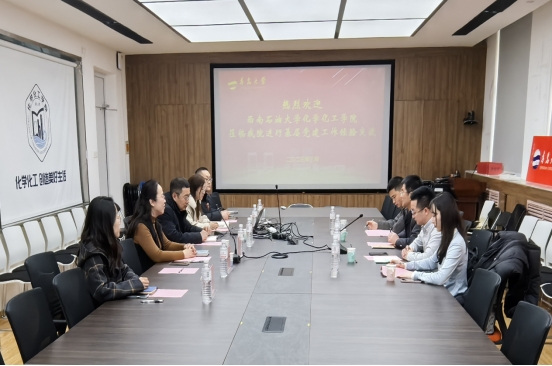 3月4日,西南石油大学太阳网集团tcy8722党委副书记戴志等一行4人来我院开展基层党建工作交流。学院党委副书记李咏沙、学工办主任付刚帮、团委书记史氾平、学生第一党支部书记孟丽以及各年级辅导员老师参加了交流会。