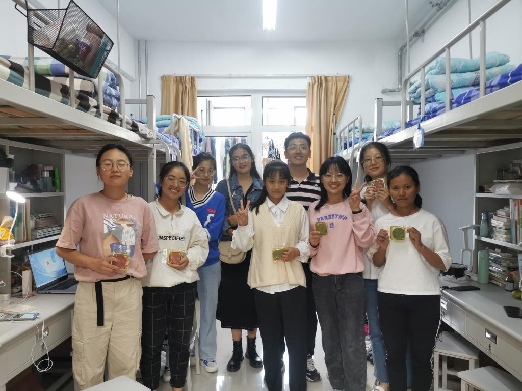 2020级新生辅导员李林林和带班学长学姐,前往学生宿舍为同学们送上定制款的青大月饼。同时辅导员老师和同学们热情亲切地交谈,细致地询问了同学们在学习和生活上是否存在困难和问题,着重强调了宿舍安全和出行安全,对同学们关怀备至。并提出历经疫情与高考的考验,大家相聚相识的缘分是多么的来之不易,希望大家能迅速的融为一体,虽来自天南海北,也要在求同存异中互相尊重,共同进步。同时鼓励大家常态化疫情防控的情况下要组好个人防护;在日常学习中要夯实专业知识,身怀使命感和责任感树立远大理想信念;还提醒同学们一定要给父母打个电话、问候一下家里长辈和亲友,节日的快乐要同家人一起分享。