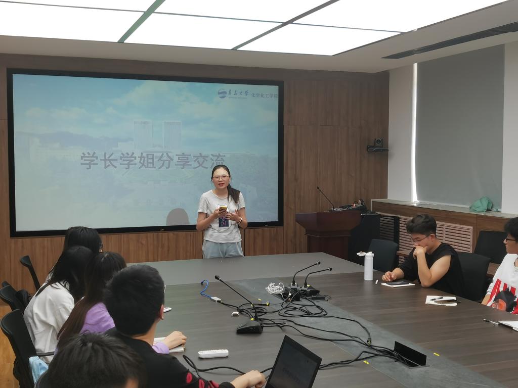 19级化工专业王炳仪和林建兵分别介绍了自己的参赛项目,并向学弟学妹们分享了自己的参赛经验,鼓励大家积极加入他们的团队,一起冲击第七届中国国际“互联网+”大赛。