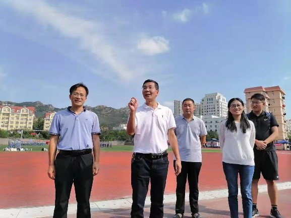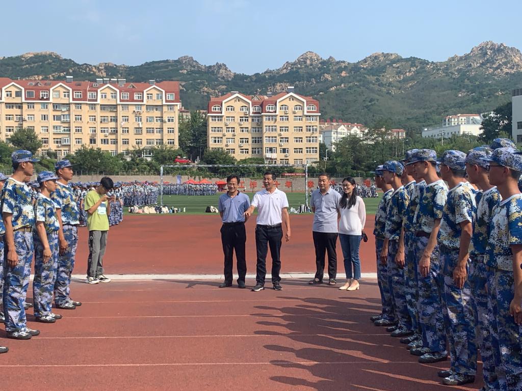9月17日上午,学院党委书记赵连章、院长王国明、党委副书记薛希洪和学工办、团委老师来到训练场地,看望慰问正在军训的学院2021级新同学。