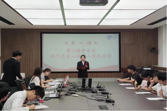 随后,第22届学生会部门负责人换届选举于2022年7月6日上午10:30,在博观楼206会议室顺利举行。院党委副书记李咏沙老师、院团委负责人史氾平老师、研究生辅导员孟丽老师和第22届太阳网集团tcy8722学生会主席团成员出席会议。