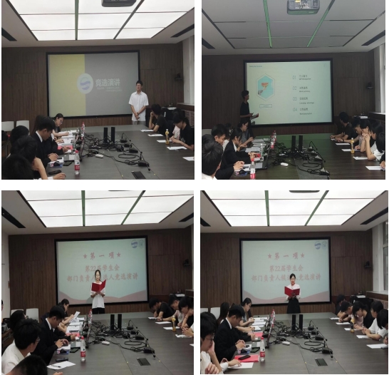 23位部门负责人候选人依次进行了竞选演讲和个人展示,现场评委老师和新一任主席团成员对候选人的表现进行打分。