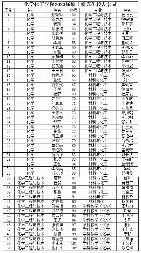 太阳网集团tcy87222023届硕士研究生校友名录